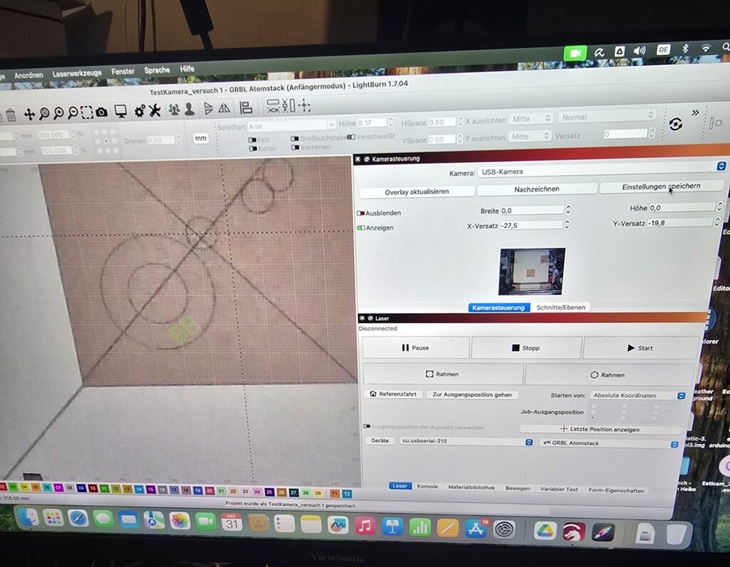 Erster Versuch lightburn und Kamera